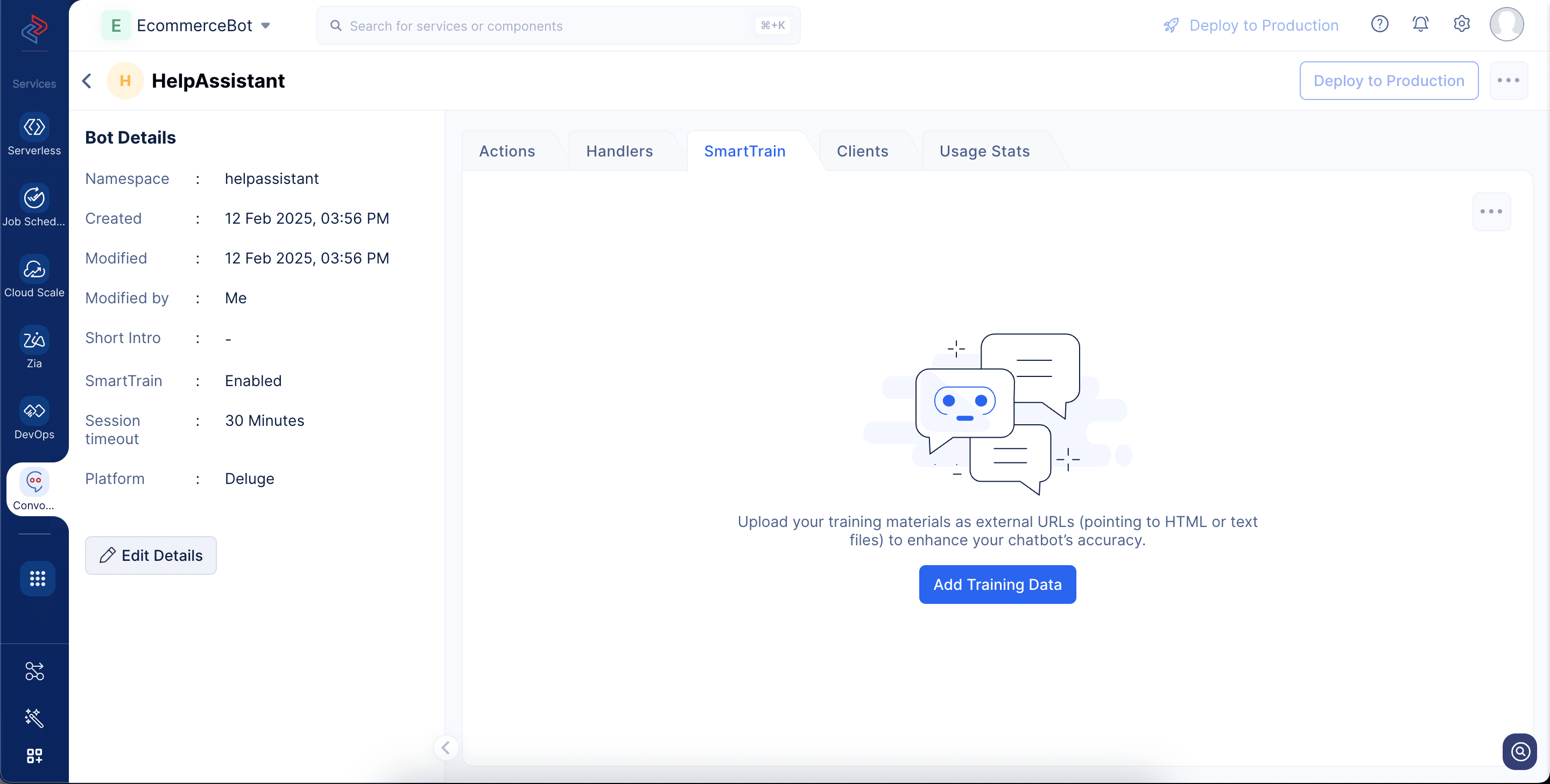 With SmartTrain, you can upload custom training data directly to ConvoKraft through the Catalyst console. The system processes the uploaded data and automatically trains the bot, allowing it to deliver intelligent responses to user queries based on the trained content.