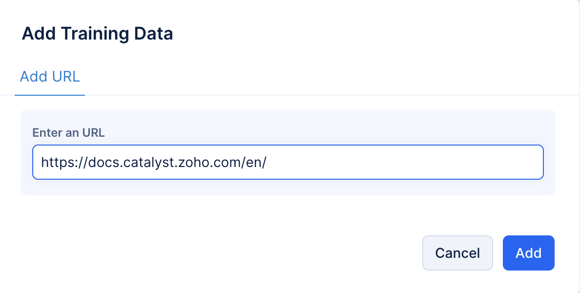 - Under the Add URL section, enter the URL of a web resource in the .html or .txt format containing the training data, then click Add.