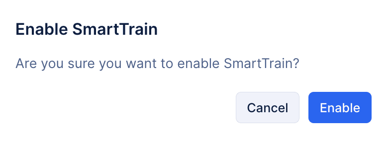- Navigate to the SmartTrain tab and click Enable SmartTrain.