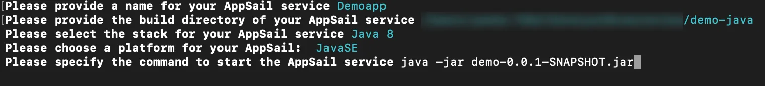 You can also execute the following command to deploy the AppSail service alone from your app’s source directory.
