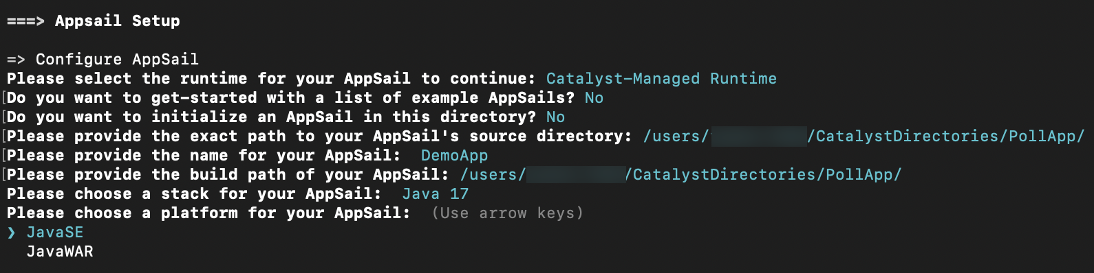 If you select Java, the CLI will further prompt you to pick either Java SE or the Java WAR as your app’s deployable format. You can learn more about this here.