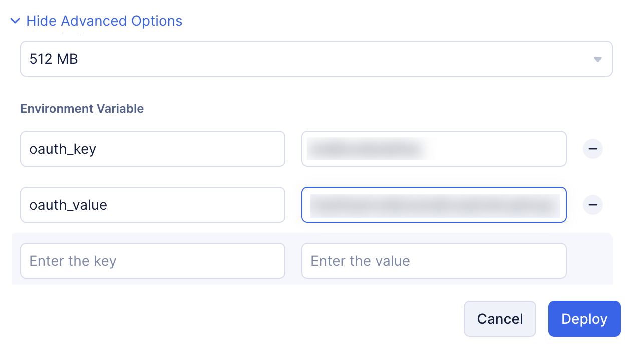 - Configure the required memory for your app’s execution, based on your requirements. You can select 128, 256, 512, 1024, or 2048 MB.