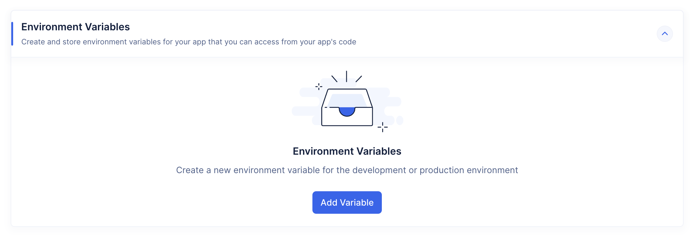 You can create and store environmental variables as key-value pairs for your app outside of the main code, for both the development and production environments.