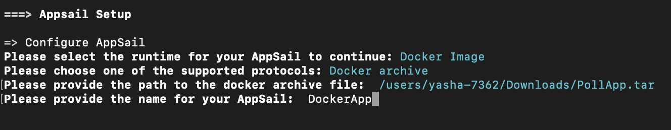 If you select Docker Archive, the CLI will prompt you to enter the absolute path to the TAR file image of your app in your local system.