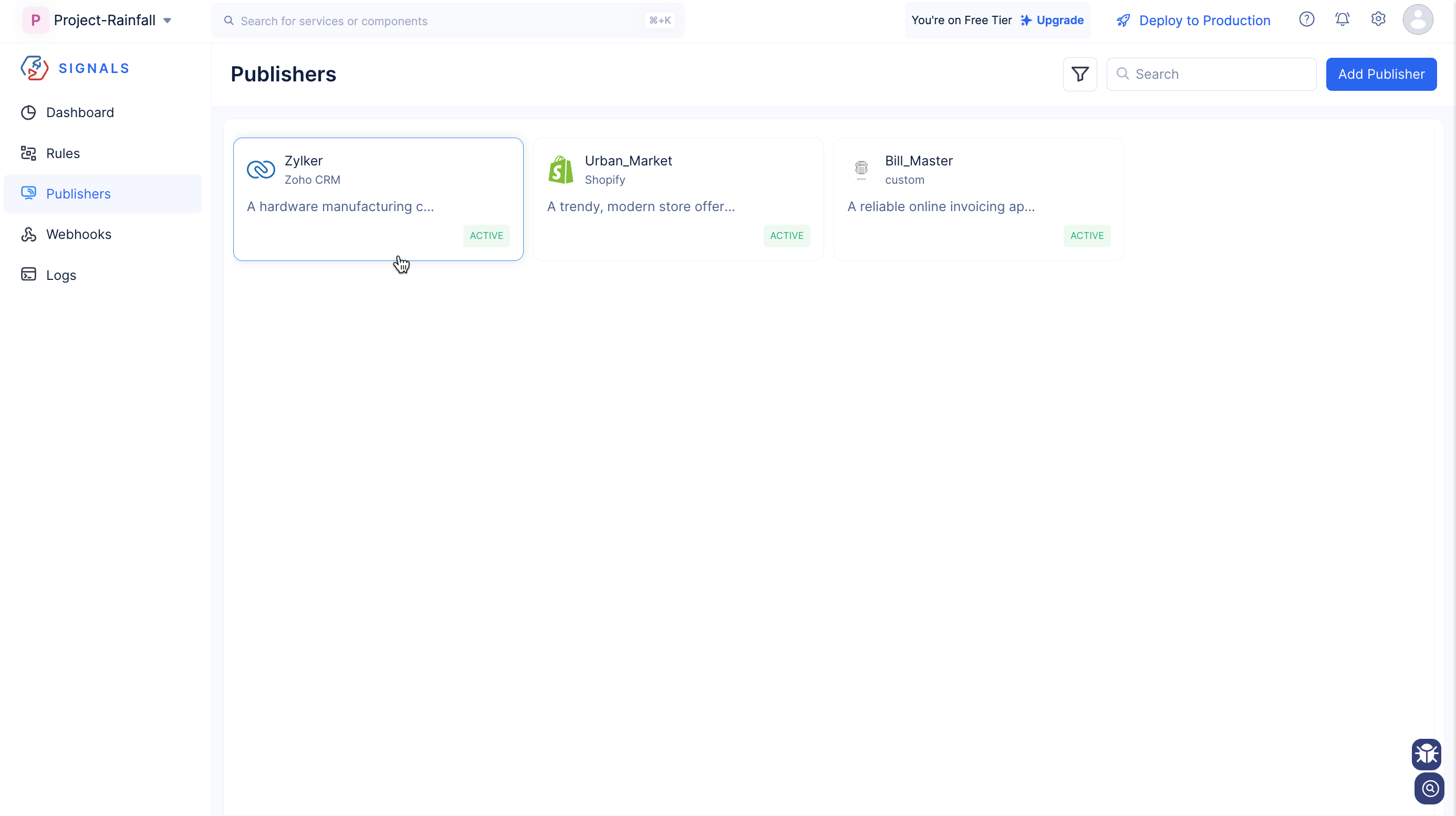 - Navigate to Publishers on the left menu and click the Add Publisher button.