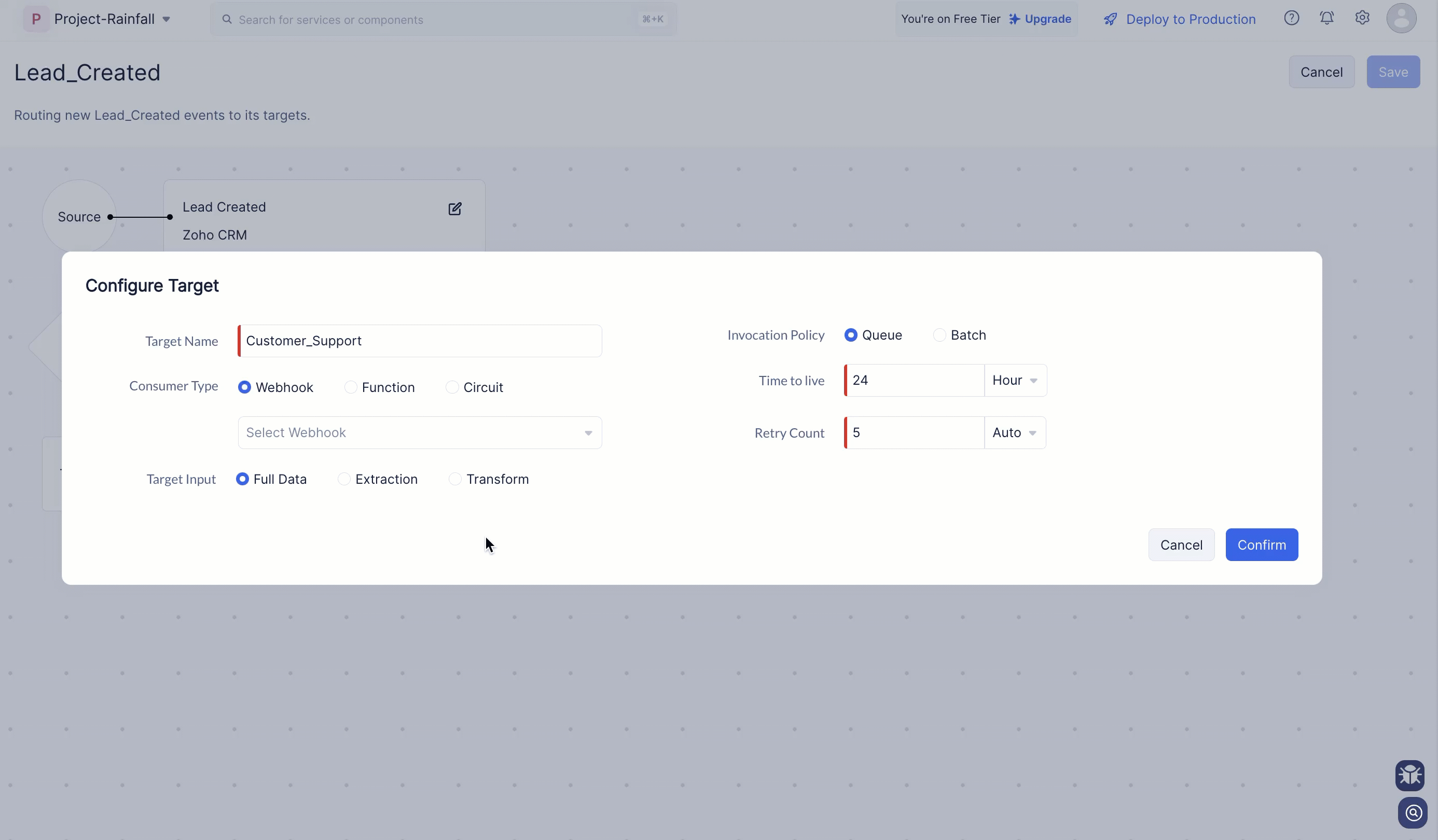 After setting up the headers/parameters, navigate to the Rule where you want to use this webhook. In the Targets section of the rule, select the webhook you just created.