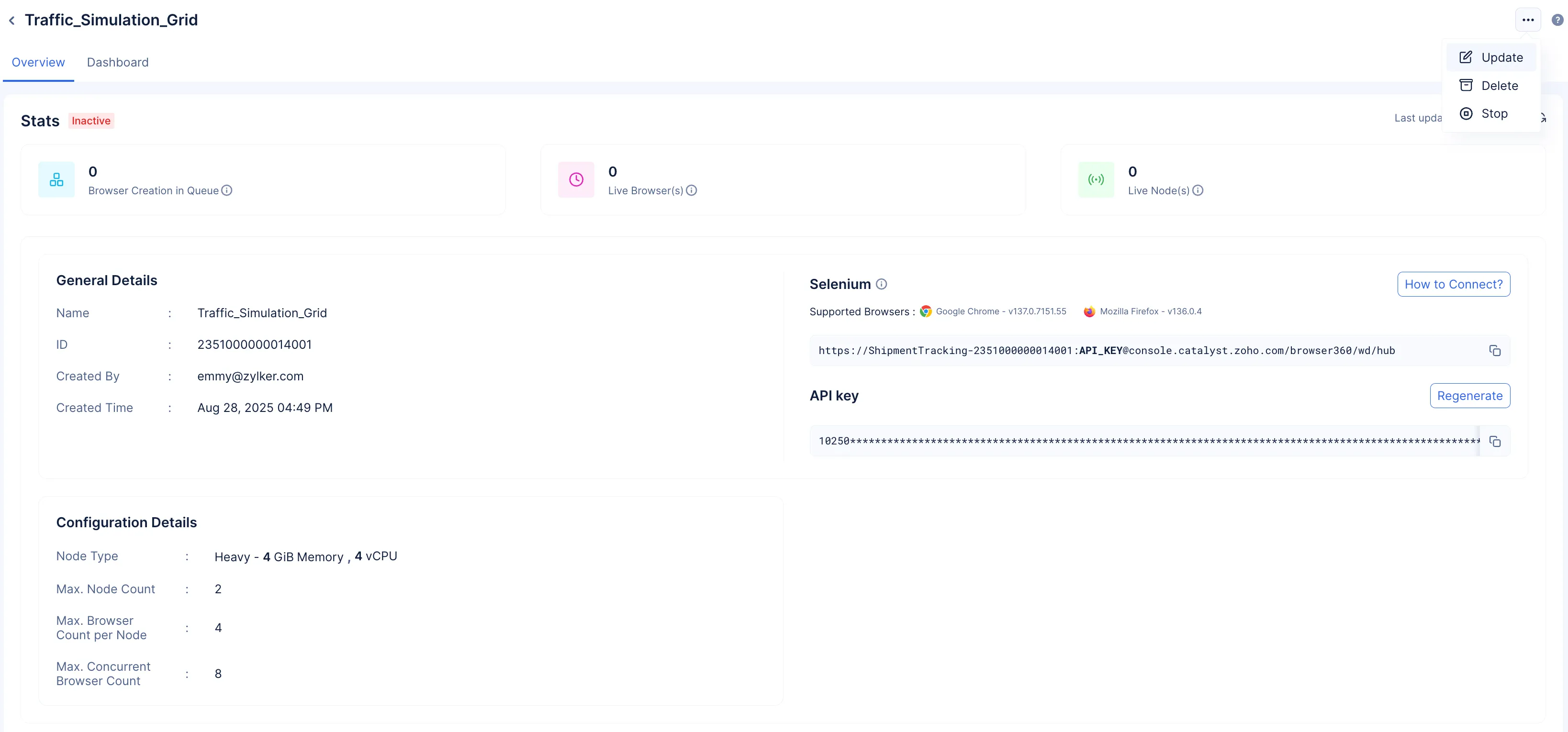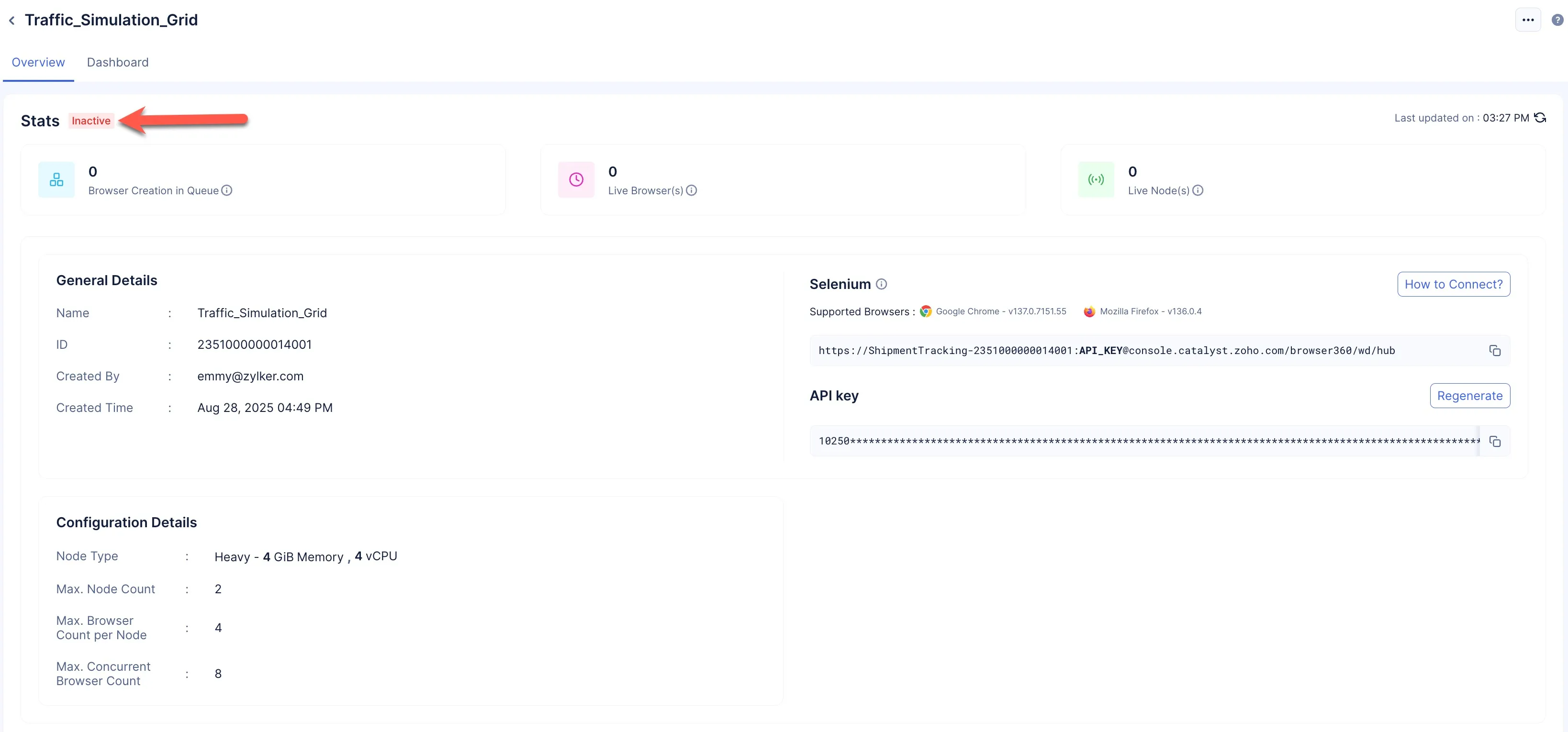 The browser grid’s operations will be suspended, and the grid will be marked Inactive.