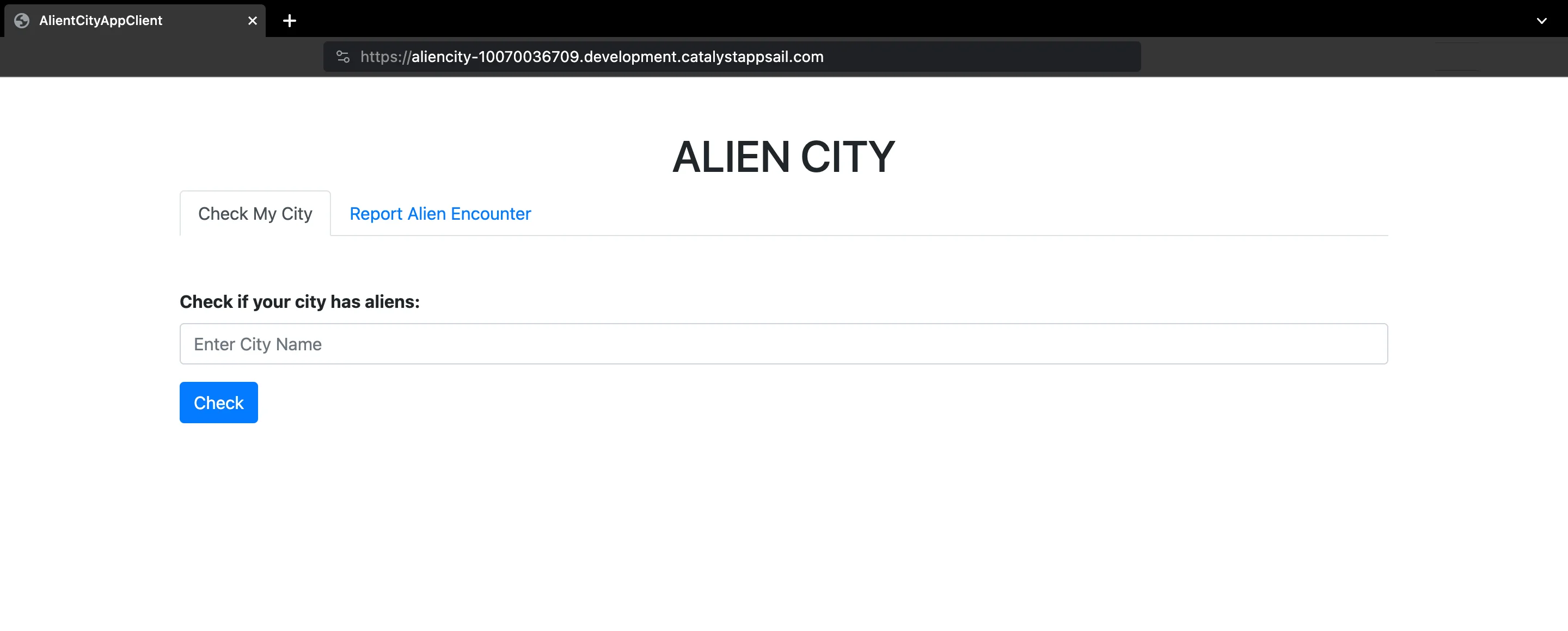 You can now access the application using the AppSail URL generated by Catalyst. catalyst_alcity_catalyst_deploy3