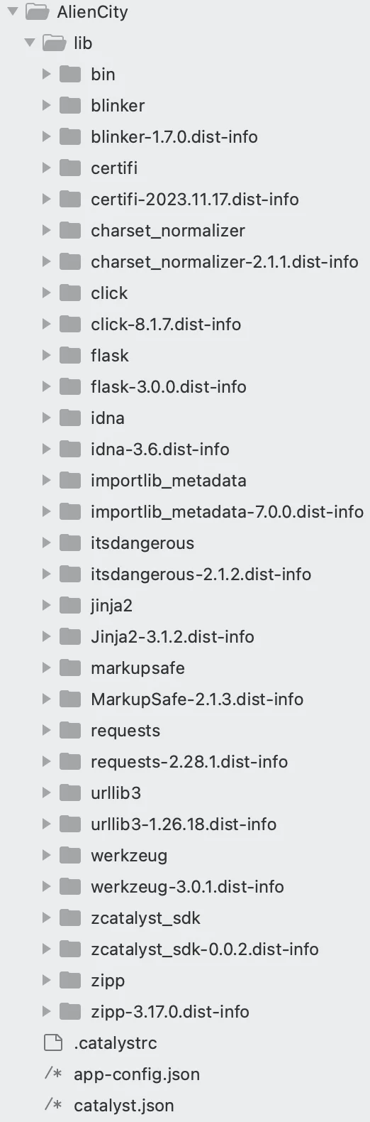 Create a new folder in your project’s root directory (/Alien City) and name it “lib”. This folder will contain the required Python packages.