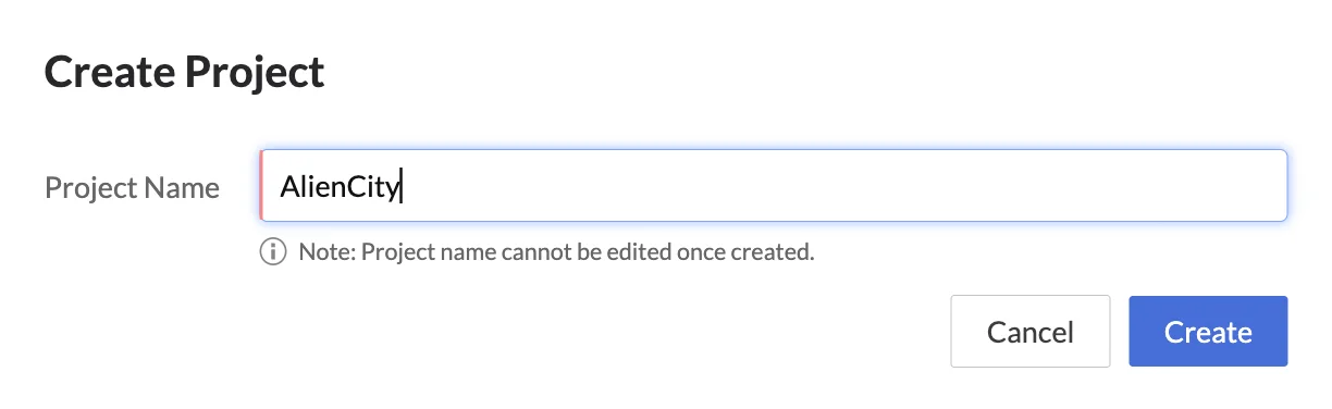 Enter the project’s name as “AlienCity” in the pop-up window, and click Create.