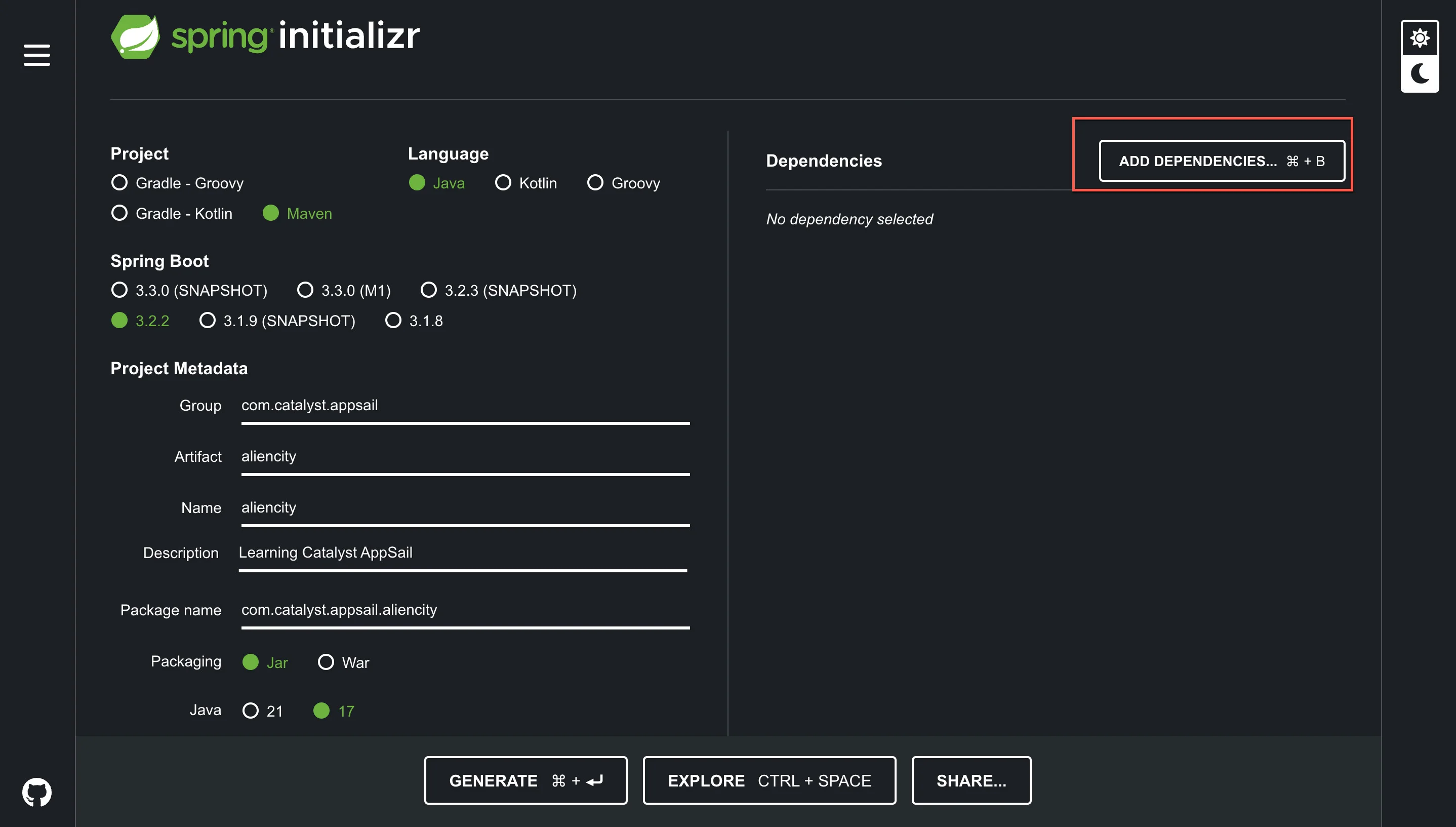 Click the ADD DEPENDENCIES button, on the right side of the screen.