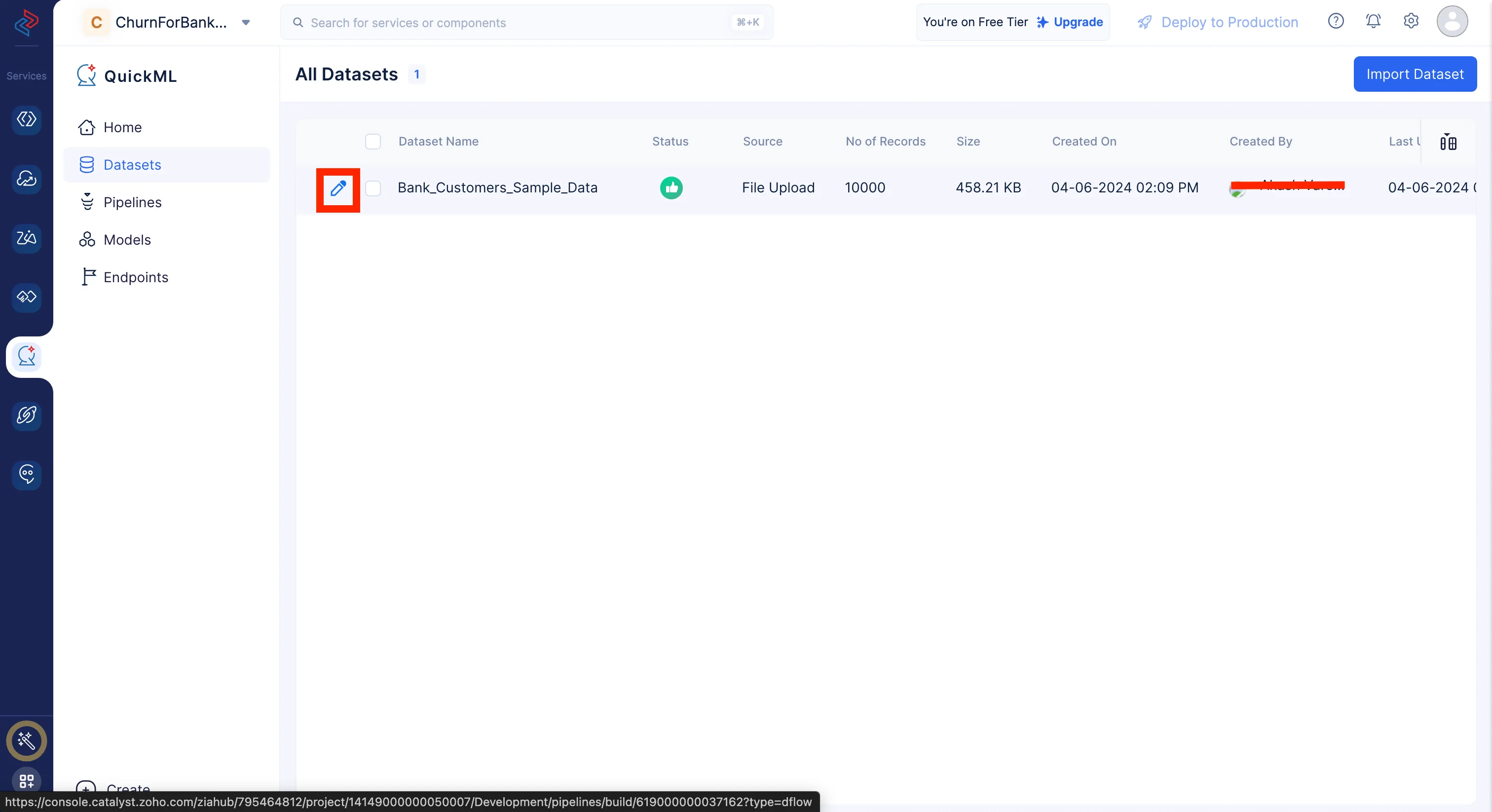 Now that we have uploaded the dataset, we will proceed with creating a data pipeline with the dataset.