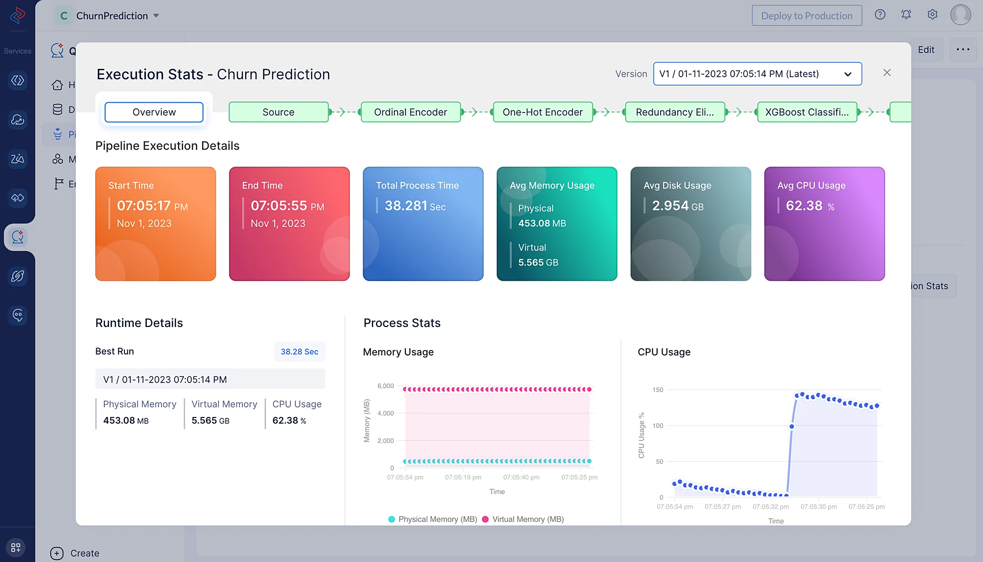 Click Execution Stats to view more compute details about each stage of the model execution in detail.