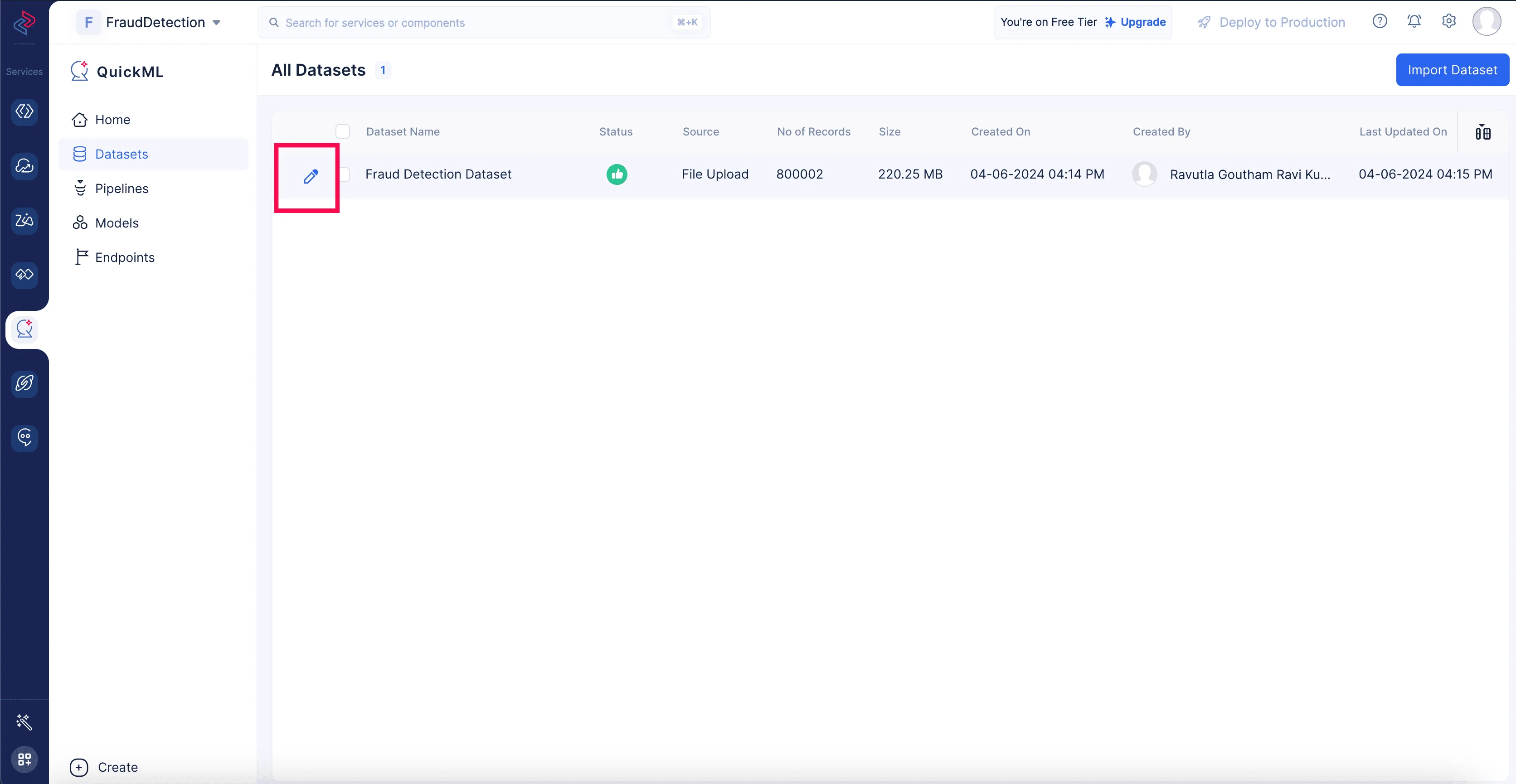 Now that we have uploaded the dataset, we will proceed with creating a data pipeline with the dataset.