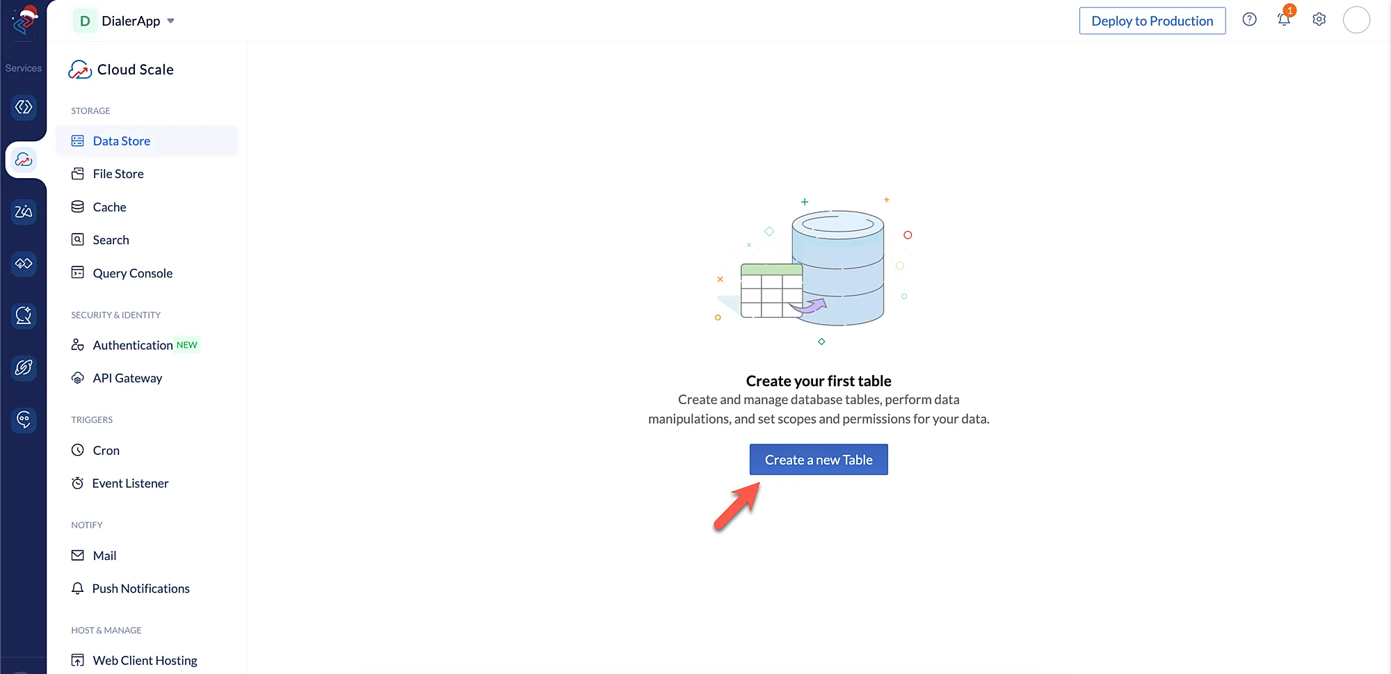Let’s now create a table in the Data Store of the Dialer project. As discussed earlier, this table is used to store to-do list items created by the user.
