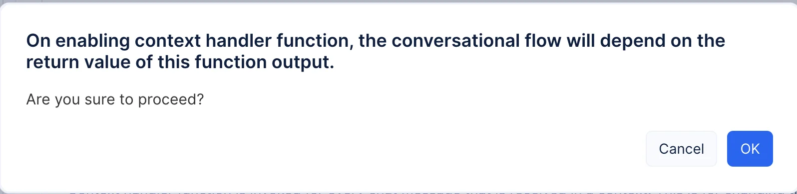 After you enable the Context handler function, click OK in the pop-up that appears in order to proceed further.