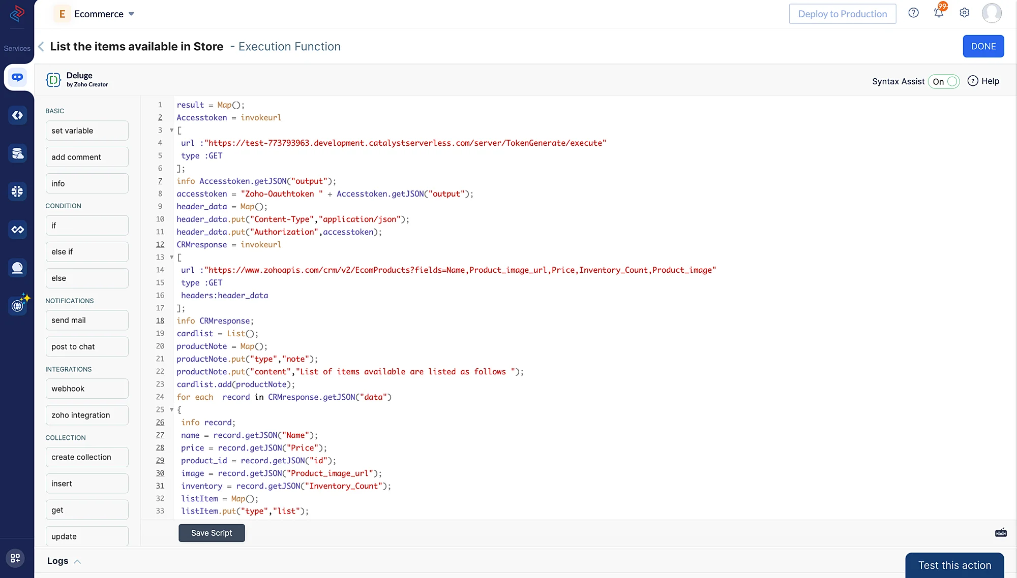 url :"https://www.zohoapis.com/crm/v2/EcomProducts?fields=Name,Product_image_url,Price,Inventory_Count,Product_image"