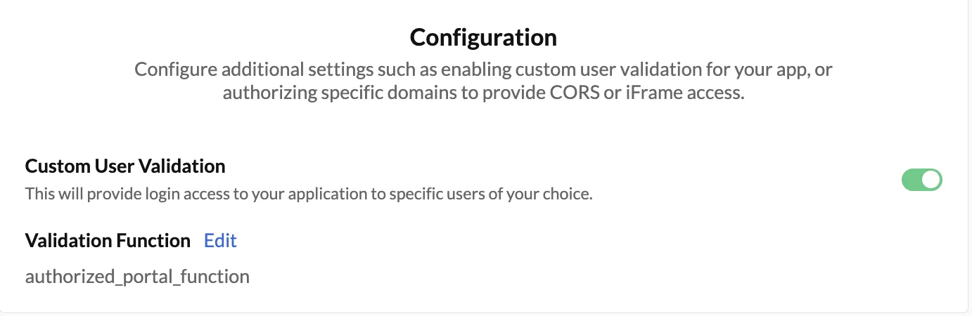 The Custom User Validation function has been enabled for the project, and the end-users signing up for your application will now be additionally authenticated using this function.