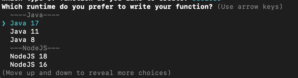 The CLI will initiate the function setup. Select Basic IO as the function type for your Custom User Validation function.