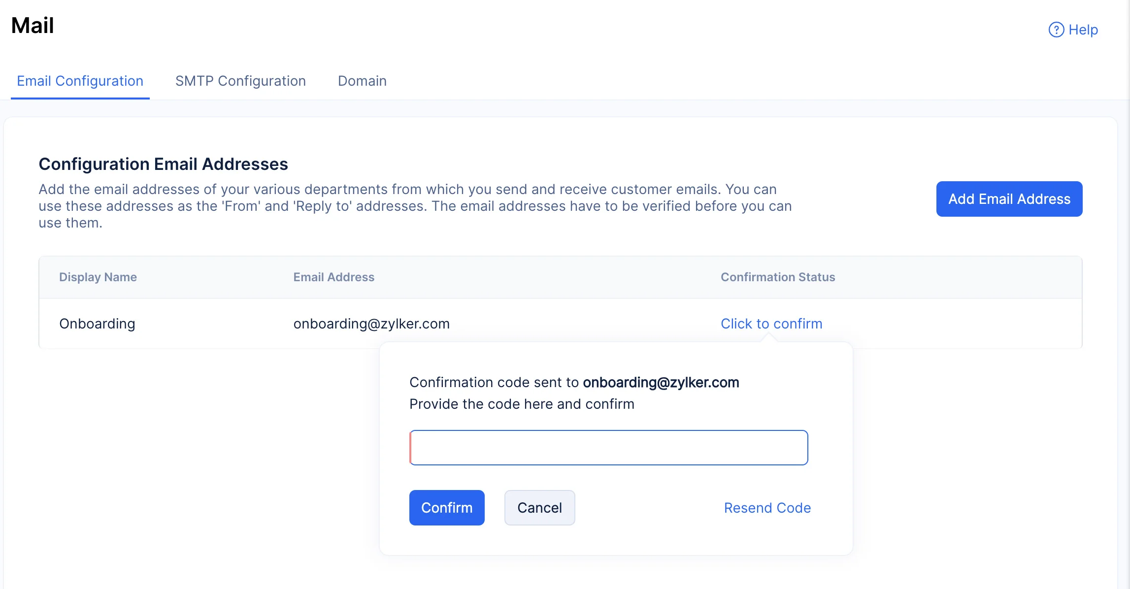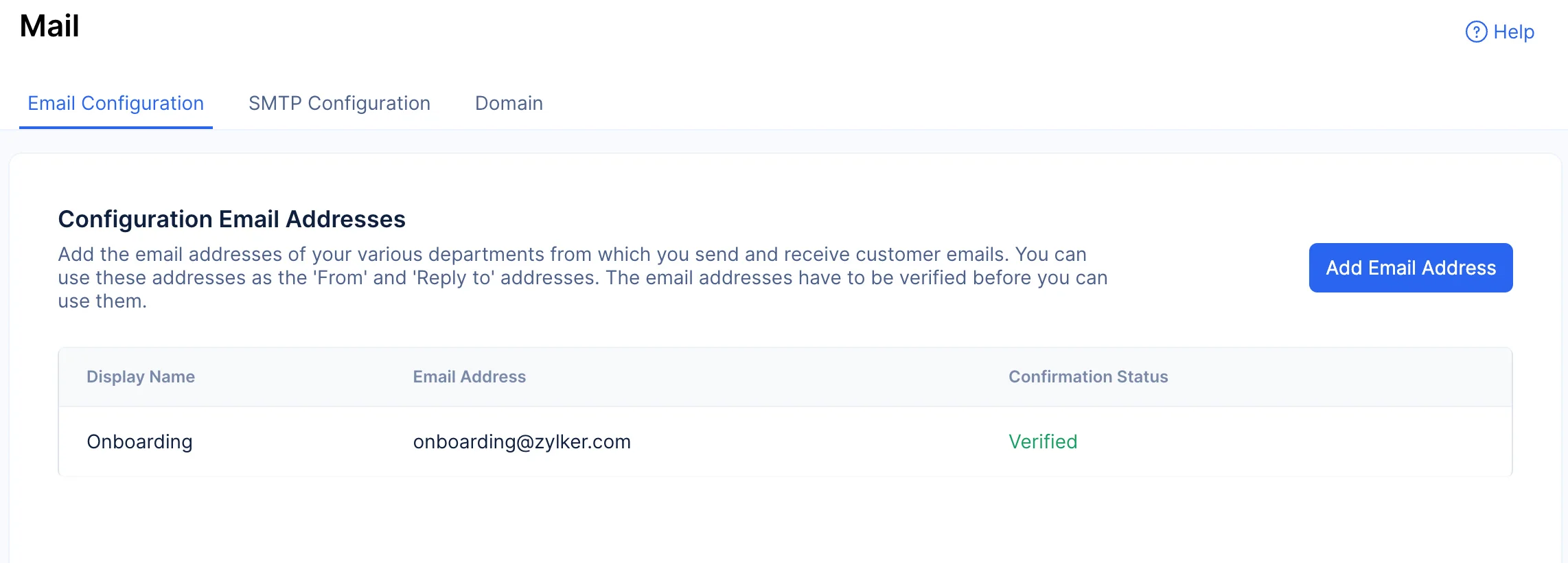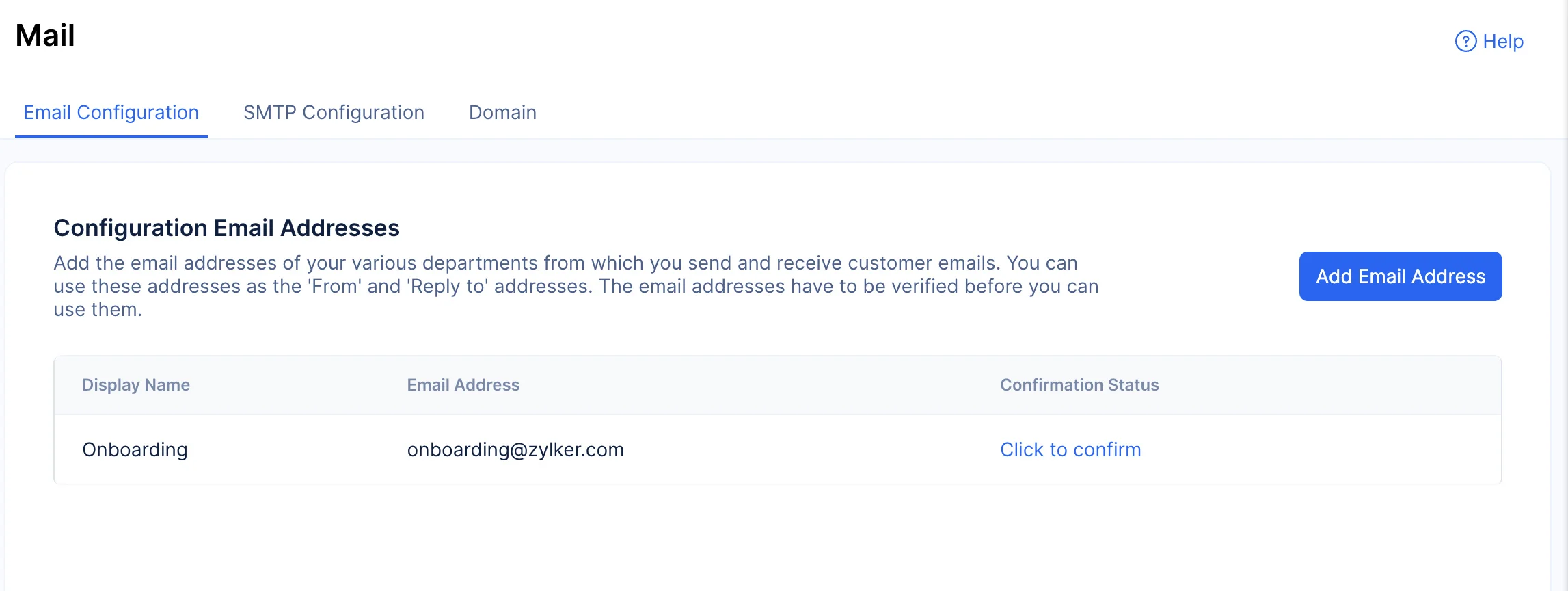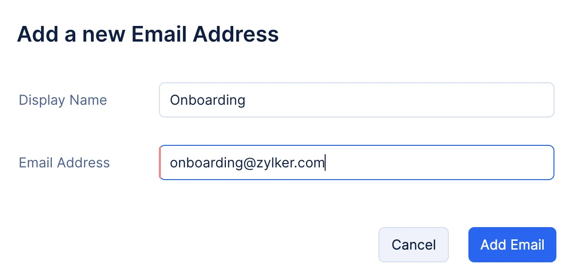 Enter the Display Name as Onboarding, and enter the email address you are going to use to send out emails to your end-users. Click Add Email.