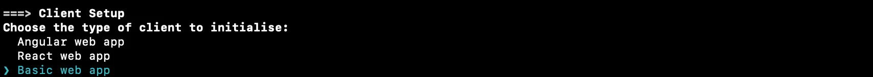 Select Basic web app and press Enter to initialize your client as a basic web app.