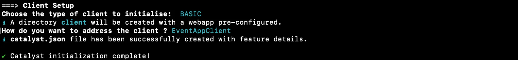 You can now begin working on your Catalyst project from the CLI. The first step is to initialize the project in an empty directory. This will be the home directory of your project, and all of the project files will be saved in it.