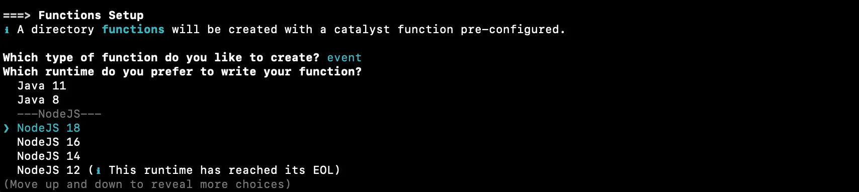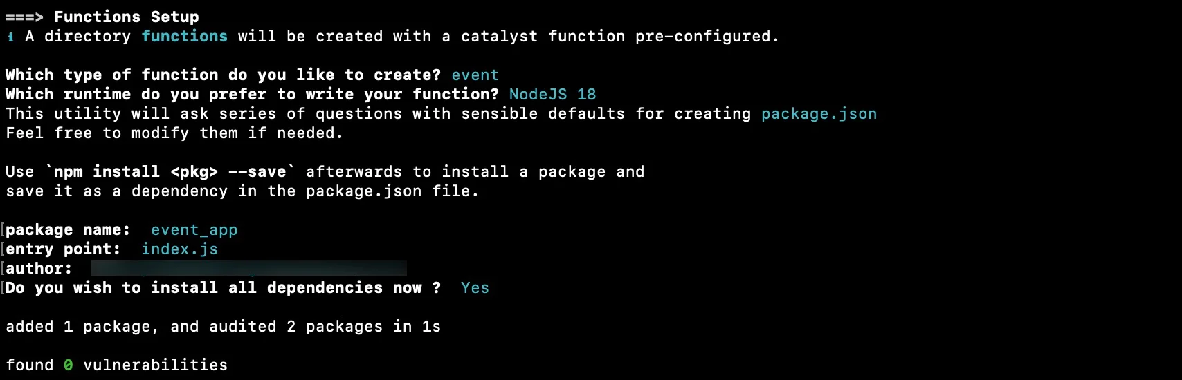 The CLI will initiate the function setup. Select Event as the function type for your Event function.
