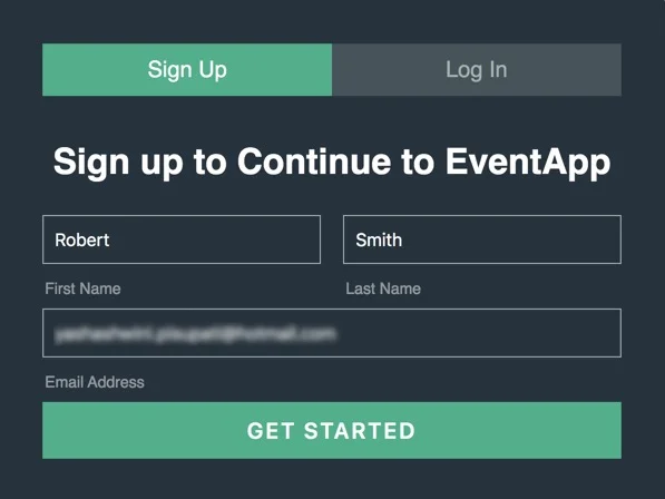 You can now open the client component’s local URL in a browser to access the application. Provide any name to test in the form. Enter one of your email addresses for Catalyst to send the verification and onboarding emails to and click Get Started.