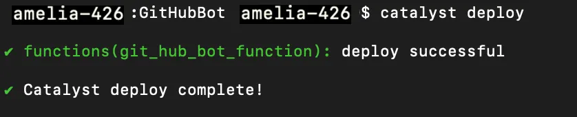 Let’s deploy the function to make it available in the Catalyst remote console. We will need to select it while creating the extension on Cliq.