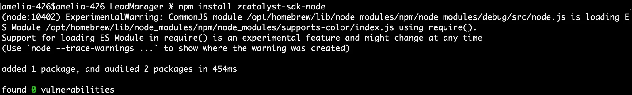 To run the application on a Node.js Express framework, let’s initialize the Catalyst Node.js SDK, Node modules, Axios and Express package for your application.