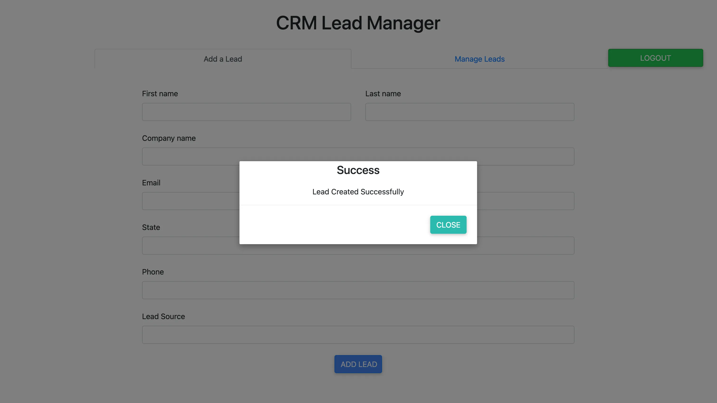 A confirmation pop-up will display the status every time you add, edit, or delete a lead.