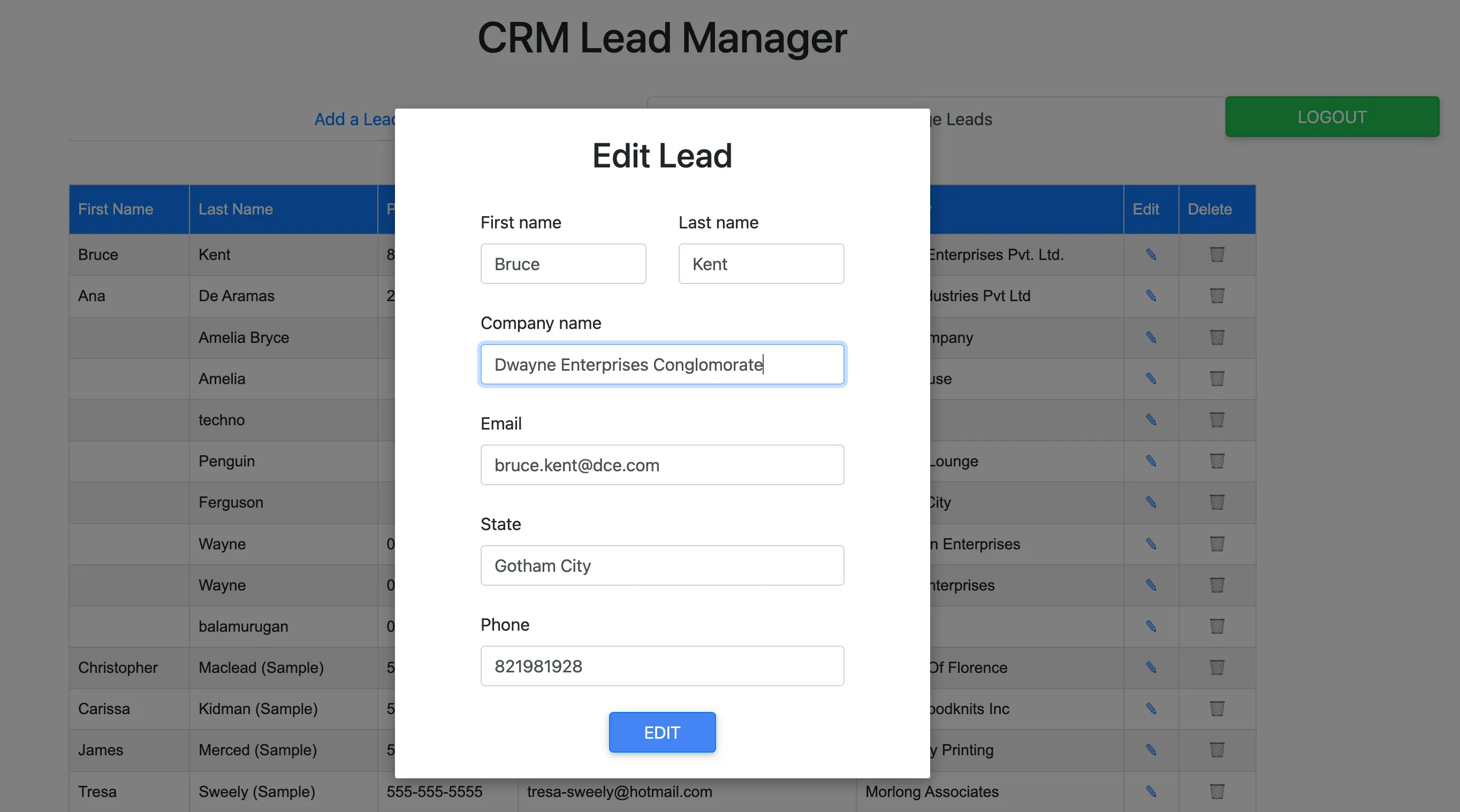 To add a lead, enter the details of the lead in the Add a Lead section and click Add Lead.