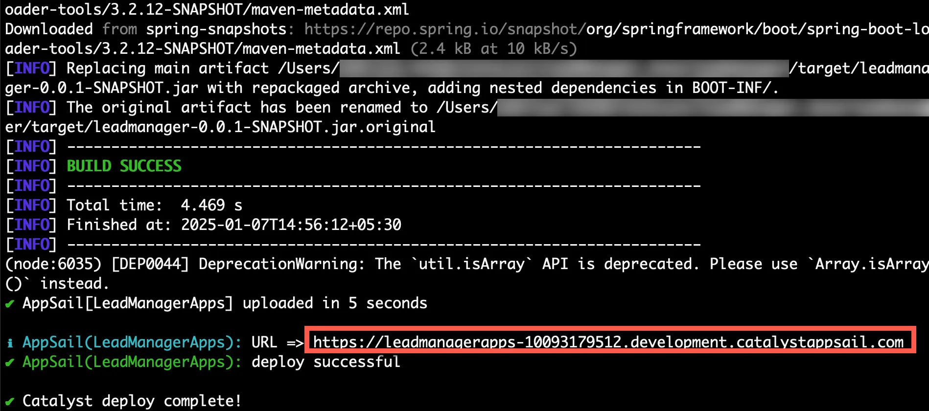 To deploy your Catalyst project from the CLI, run the following command in your terminal from your project directory: