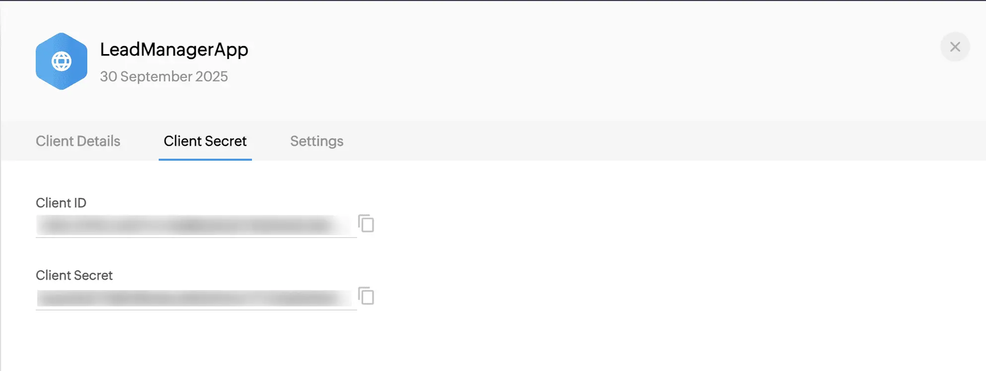 Replace {APP_DOMAIN} with the application URL value of the LeadManager project you created in Catalyst. The application URL follows the below syntax :