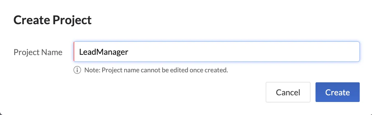 Enter the project’s name as “LeadManager” in the pop-up window.