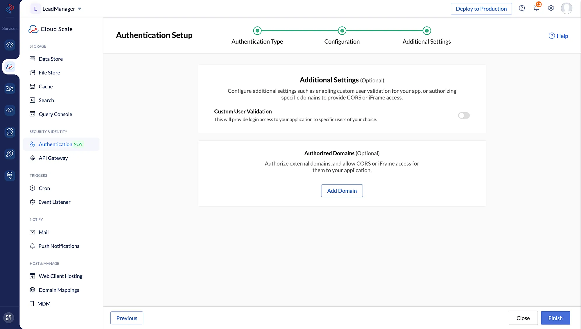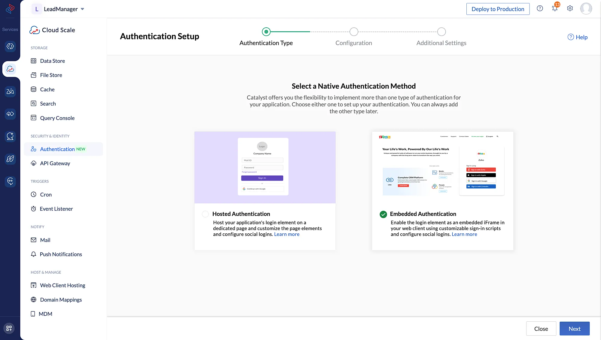Navigate to Authentication under the Security & Identity section, click Setup in the Native Catalyst Authentication tab.