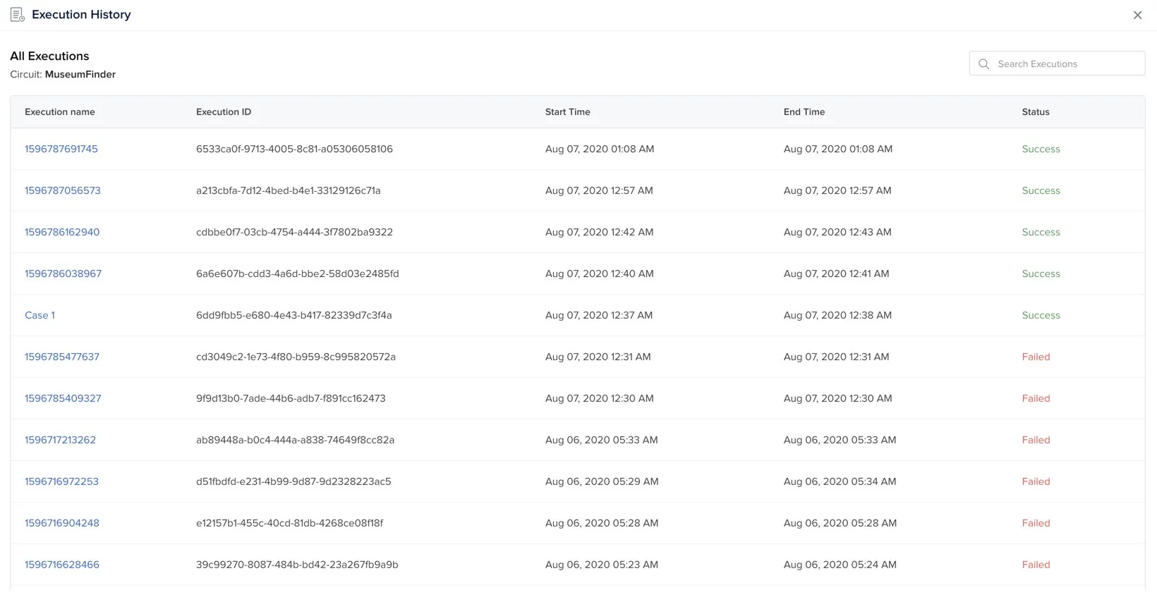 You can check the circuit’s execution by navigating to the Circuits page in the Catalyst console and clicking Execution History.