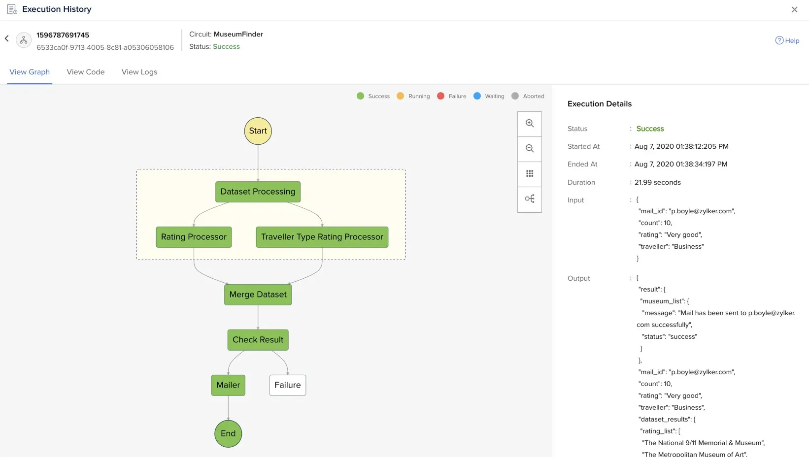 You can view the circuit’s output under Execution Details, along with other details in the View Graph section. The graph will display the path that was traversed during the circuit’s processing.