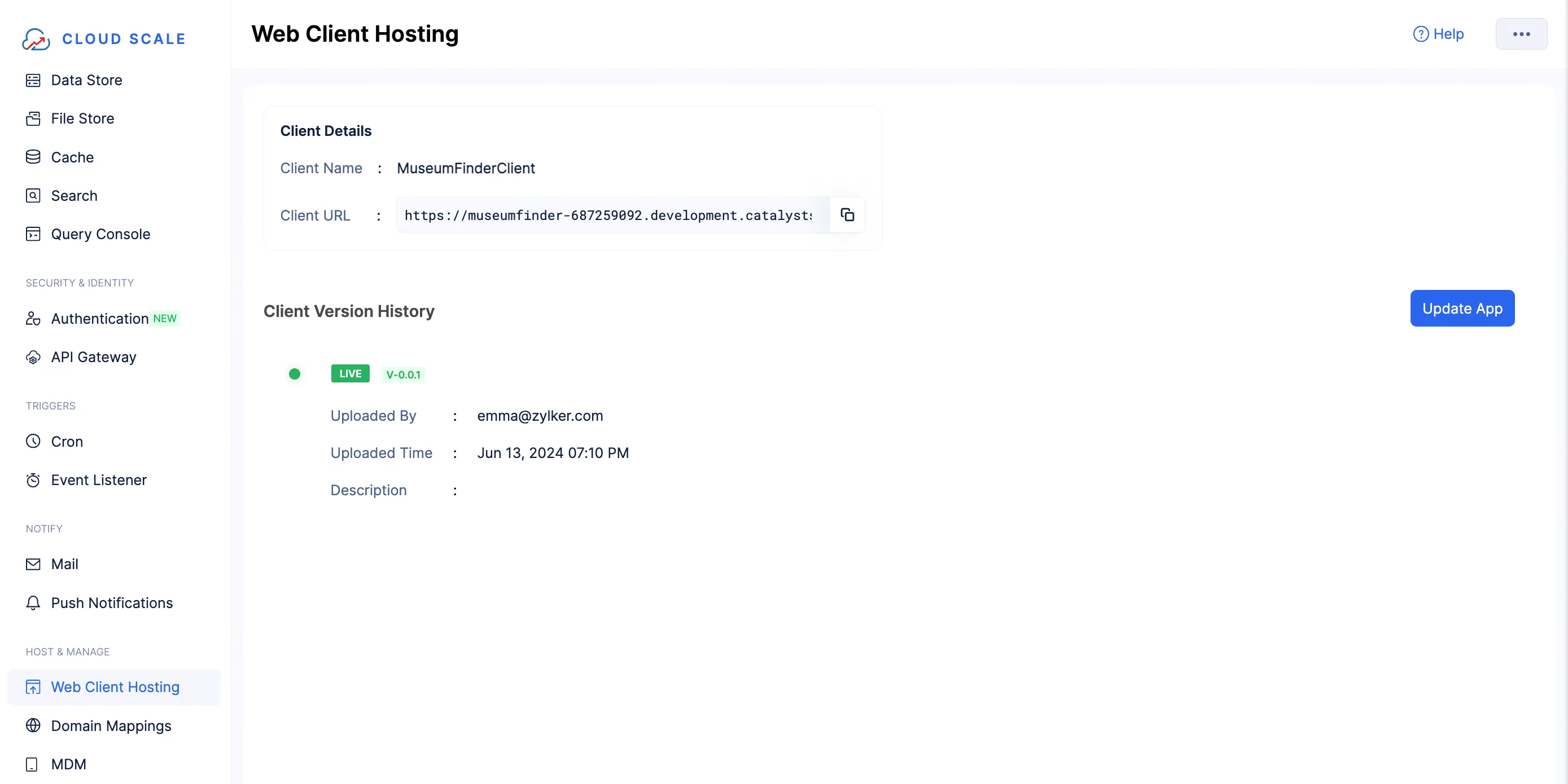 Navigate to Web Client Hosting from Cloud Scale. Click the web app URL.