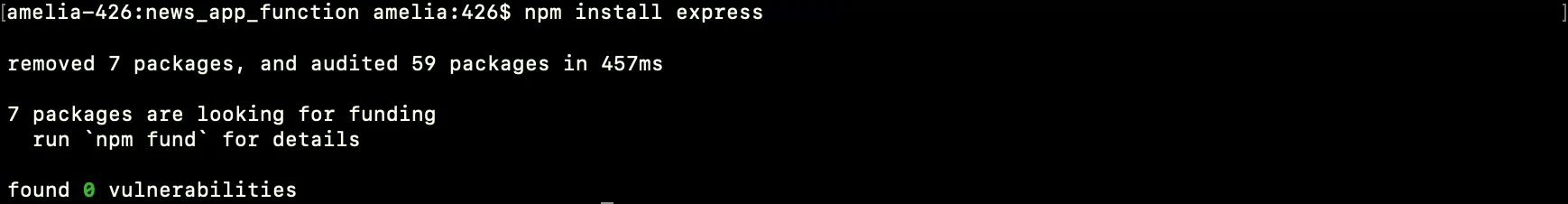 This will install the Express module and save the dependencies.