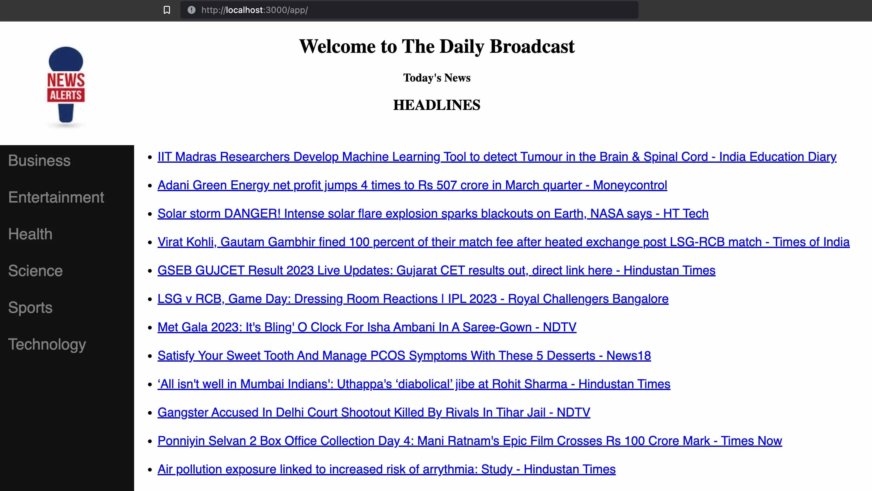The news application displays the general news headlines on the index page. You can click a topic on the left to check the latest headlines in that category. You can open the original news article by clicking on a headline.