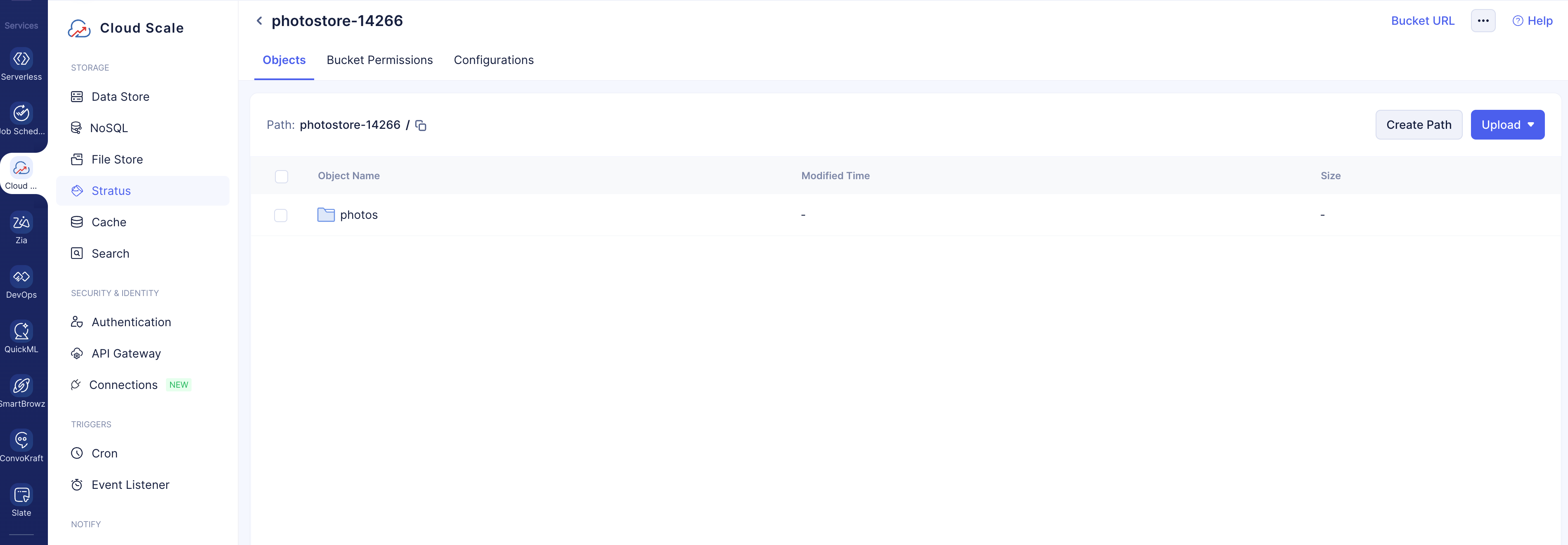 Once the AppSail service is deployed to the Catalyst console, we will have the application URL. Given that the domains for the bucket and the AppService are different, we need to enable Cross-Origin Resource Sharing (CORS) policy to authenticate and allow seamless interaction between the AppSail service and the Bucket.