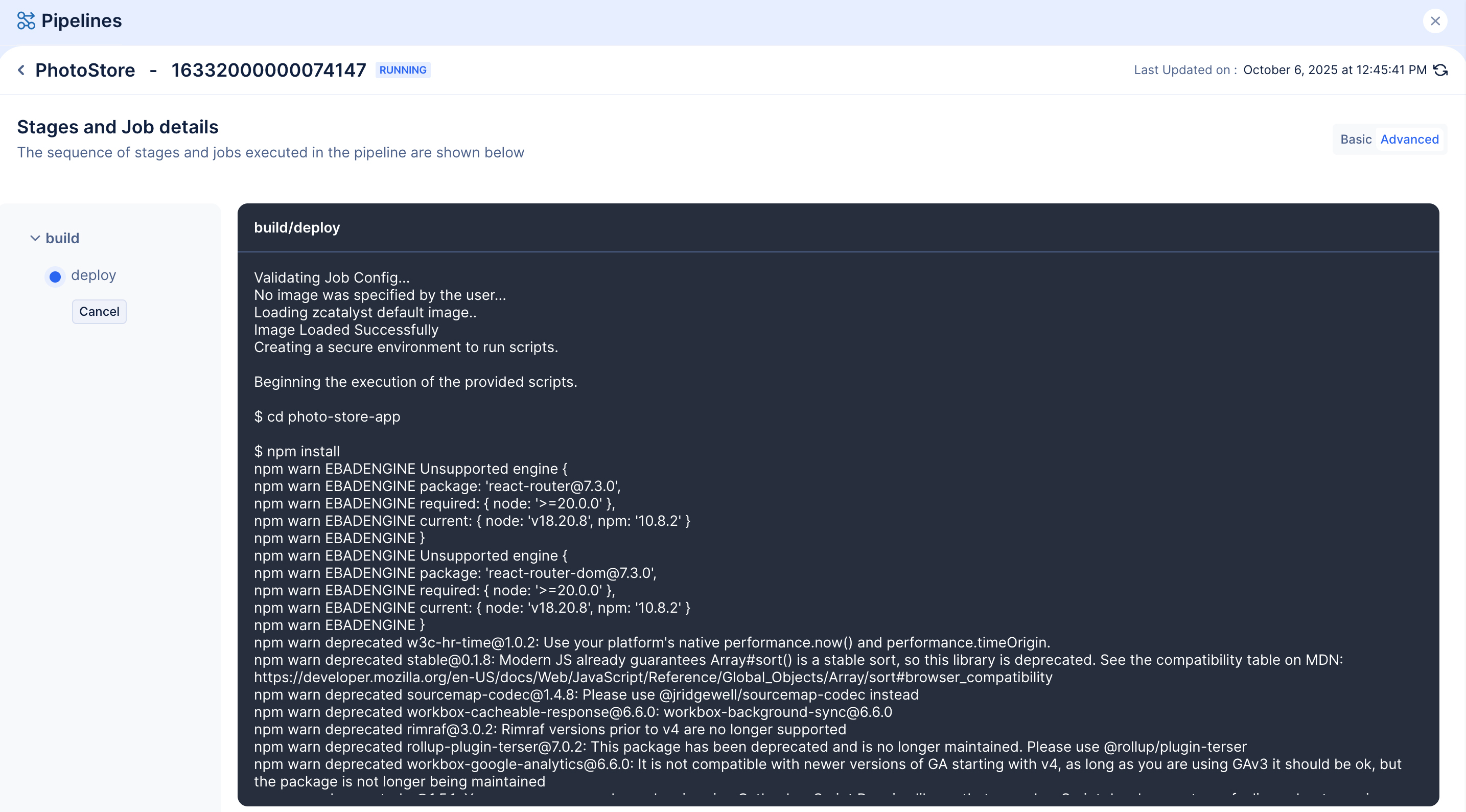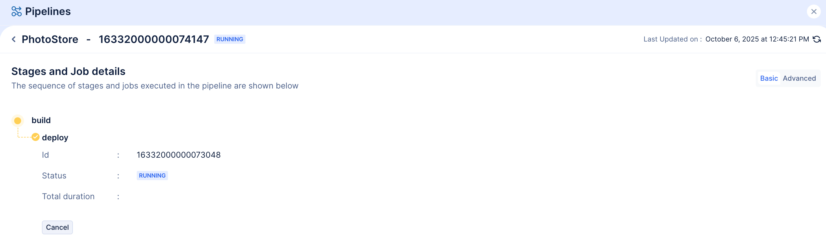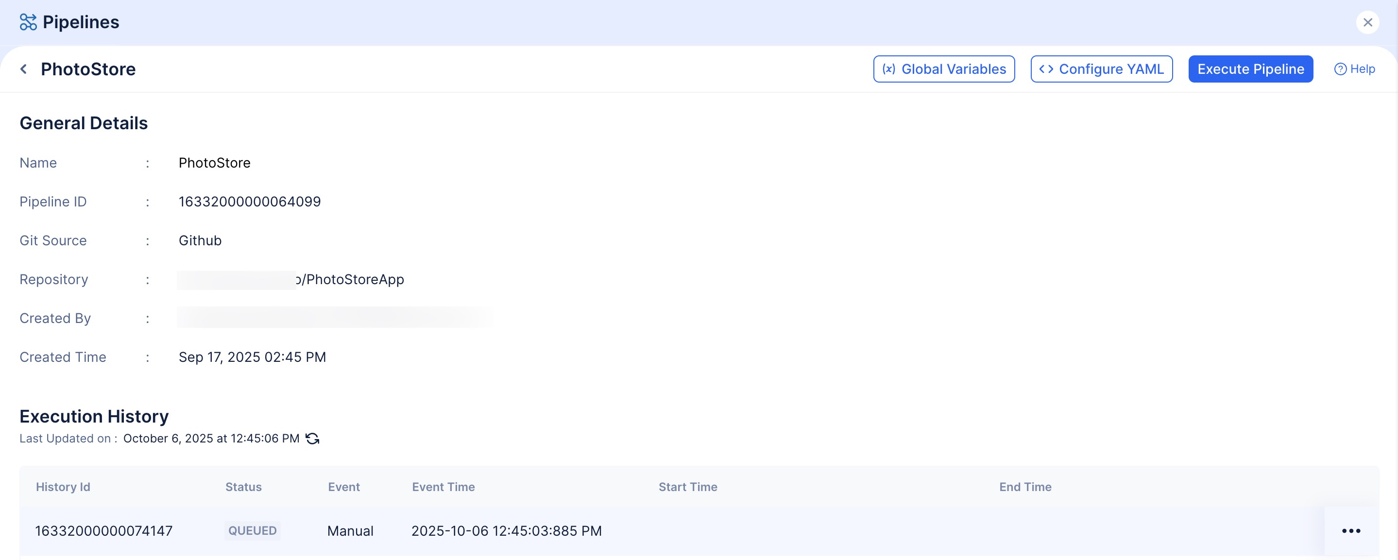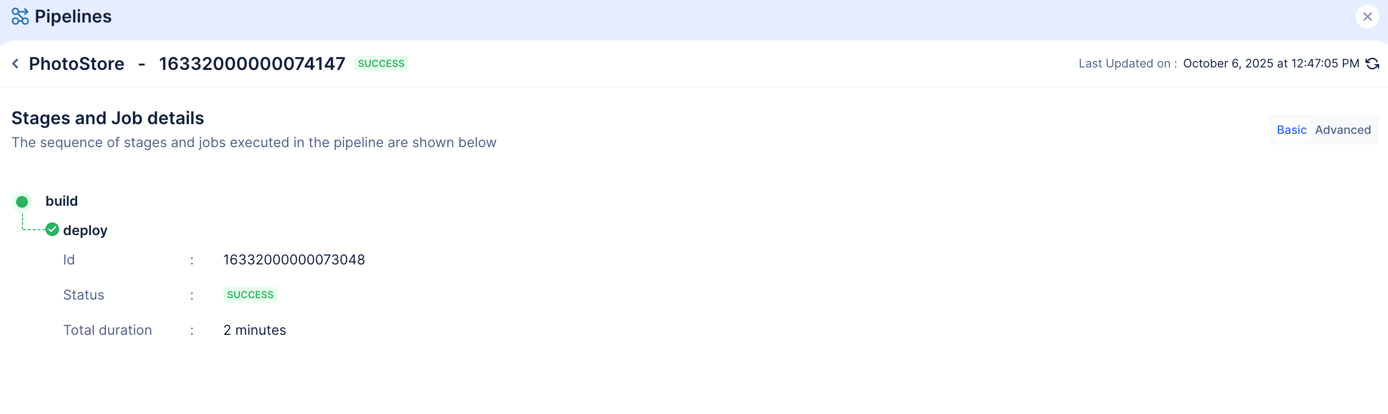 You can check the status of the pipeline by clicking on the executed pipeline for more details.