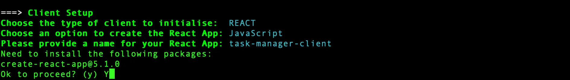 Enter “task-manager-client” as the name of your client package and click Enter. You can also provide any name of your choice. All of the required React packages, such as “react,” “react-dom,” and “react-scripts” will be installed through the Catalyst React plugin (zcatalyst-cli-plugin-react).