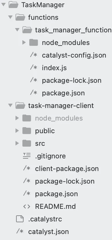 This is the structure of the TaskManager project’s directory if the client is initialized as a React app.