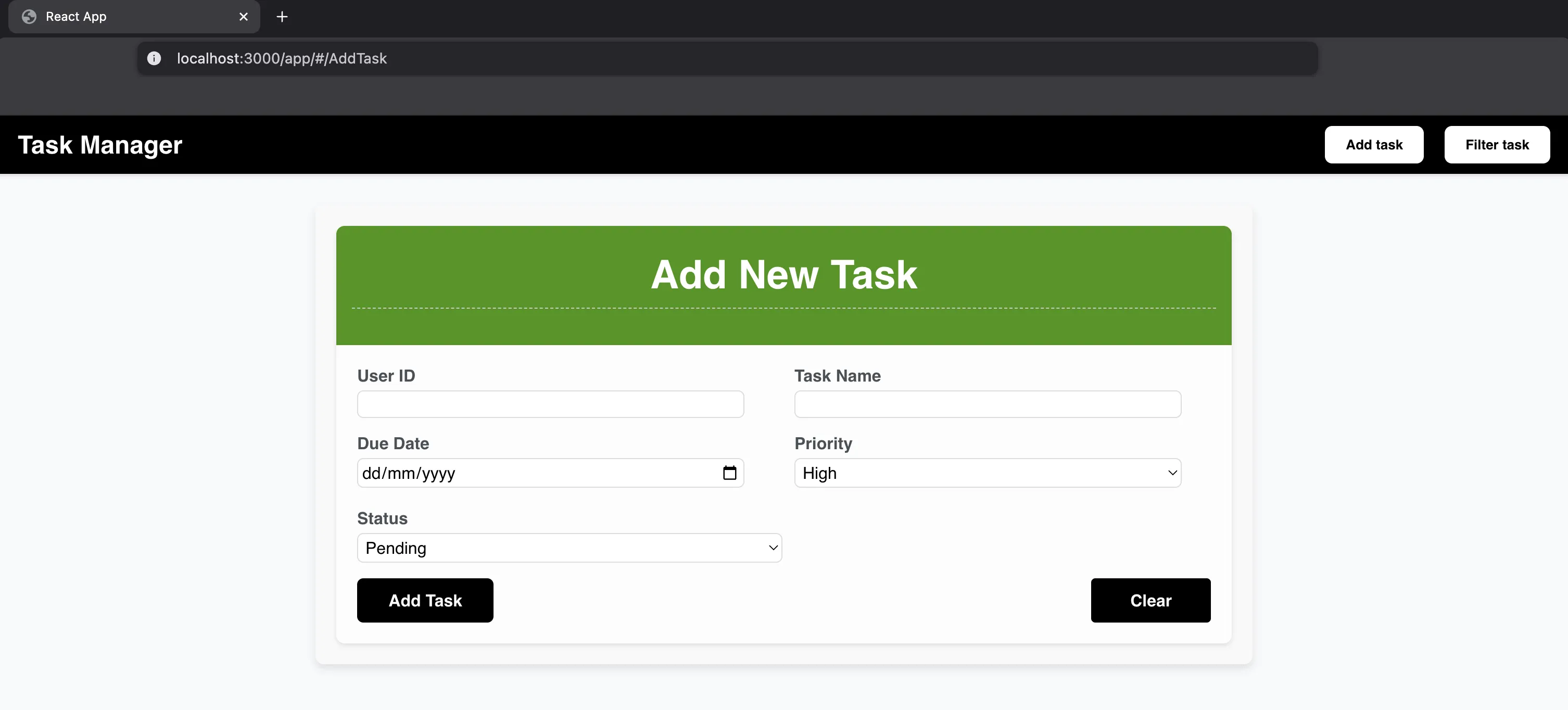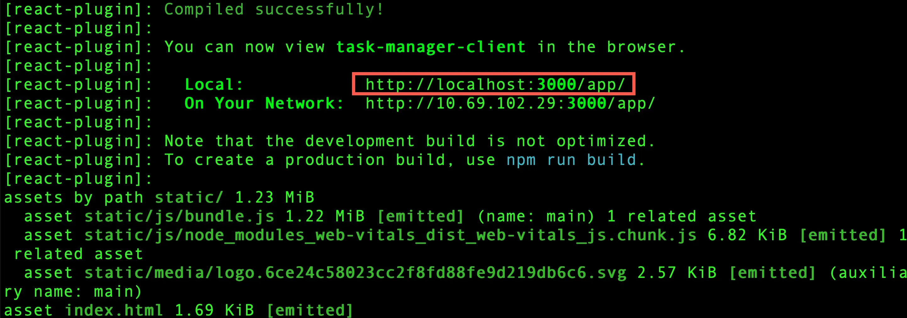 You can now open the application’s localhost URL in a browser to access the Task Manager application.