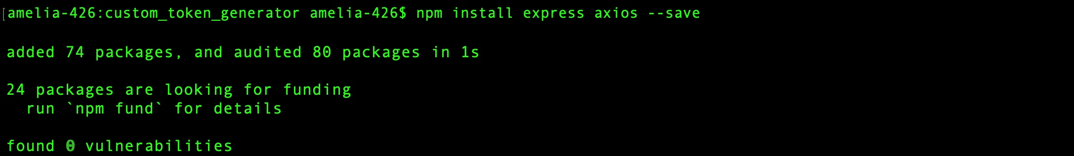 Navigate to the function folder present in the functions/custom_token_generation directory and install the following packages using the command shown below: