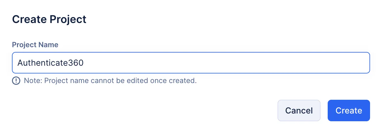 Enter the project’s name as “Authenticate 360” in the pop-up.